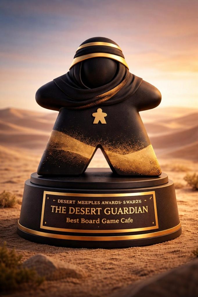 The Desert Guardian Trophy symbolizes leadership, innovation, and excellence in tabletop gaming across the Middle East. Inspired by the iconic meeple form and regional desert identity, the award represents an exceptional contribution to the growth of the tabletop community.